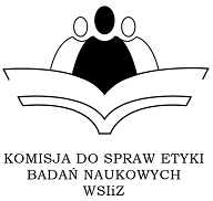 Zadaniem Komisji Bioetycznej jest wydawanie opinii o projektach badań klinicznych lub eksperymentach medycznych oraz dbanie o dobro pacjentów biorących w nich udział. Wnioski do Komisji Bioetycznej WSIiZ mogą składać podmioty planujące przeprowadzanie eksperymentów medycznych lub badań klinicznych. Obsługę administracyjną Komisji Bioetycznej WSIiZ zajmuje się dr Sylwia Banaś-Mazur. Kontakt do Komisji: sbanas@wsiz.edu.pl.